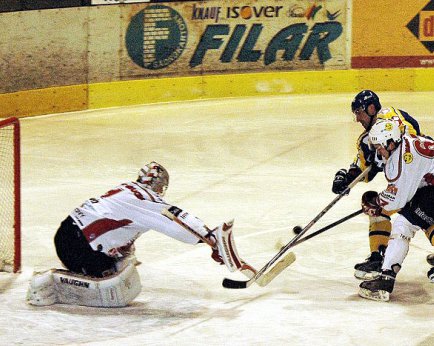 I druhá třetina odstartovala velmi svižně. Hosté se snažili zkorigovat nepříznivý vývoj a několikrát ohrozili domácího gólmana, ale bez úspěchu. Skóre druhé dvacetiminutovky otevřel až v sedmadvacáté minutě Jiří Vondřich, který dorazil puk do odkryté brány - 3:0. Do devětatřicáté minuty se střídaly šance na obou stranách. Na nudu si rozhodně nemohl stěžovat Kubiš, více se ale zapotil hostující Jež, na něhož mířilo více střel. Ve výše zmíněné devětatřicáté minutě se dorážkou trefil Josef Slavík - 4:0.