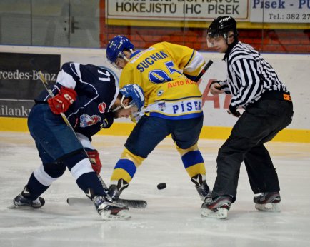 Písečtí hokejisté vstoupili do 26. kola vcelku dobře a i když měl možná více práce písecký brankář Luboš Kadlec, udeřili zaslouženě domácí. Když písecký brankář vychytal nebezpečnou střelu Seidla, udeřil za deset vteřin na druhé straně kluziště Václav Pašek, který překonal Klestila dorážkou v brankovišti. Paškův gól odstartoval i benefiční akci Plyšáci na led, při které se mezi mantinely snesly stovky plyšových hraček, které klub daruje dětskému oddělení písecké nemocnice a nejspíš i dalším organizacím, protože zásobu vytvořili písečtí fanoušci opravdu velkou.