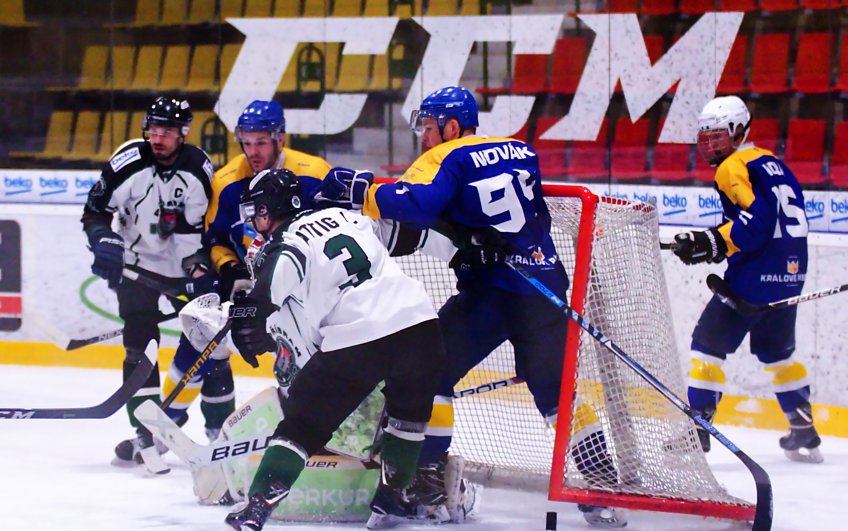 V první třetině svižného utkání měli více šancí domácí hokejisté a pomohly jim k nim přesilové hry. Radostněji šli ale do kabin Králové z Písku a byla u toho kompletní první formace. Píseckou střídačku rozjásal v osmé minutě Daniel Arnošt, když po písecké šanci dorážel na brankovišti. Několik pohledných zákroků musel především závěru prvního dějství vytáhnout Richard Kříž, který během prvních dvaceti minut udržel čisté konto.