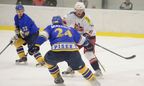 Písek se ujímá vedení ve finálové sérii hrané na dvě vítězná utkání. V prvním finálovém zápase měli sice zpočátku navrch hosté z krajského města a po první třetině zaslouženě vedli. K jejich smůle ale vsítili jen jednu branku. Domácím se podařilo ve druhé třetině nasázet tři branky a skóre otočit. V závěru utkání pečetil hattrick Karel Mošovský.