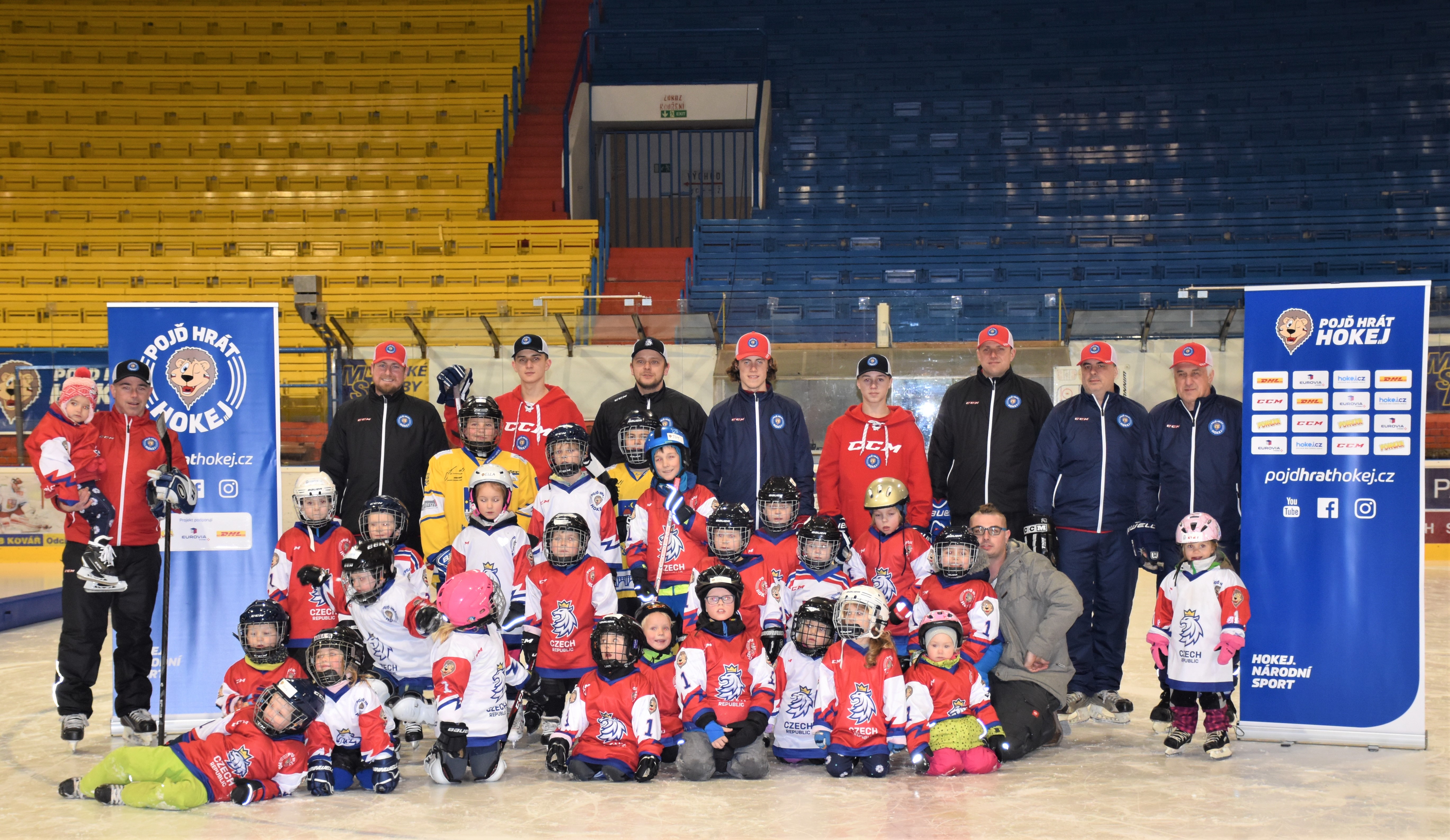 Zábavné odpoledne začalo v útrobách stadionu po 16. hodině, kdy se naplno rozběhla registrace. U té dostaly všechny děti dárečky včetně reprezentačního dresu v designu organizace Český hokej. Zatímco rodiče dostali během krátké prezentace důležité informace o klubu, náborech a dostupné výstroji, kterou do klubů dodává také hokejový svaz a lze si ji poměrně levně v klubu vypůjčit, děti si v kabině prohlížely a zkoušely hokejovou výstroj.