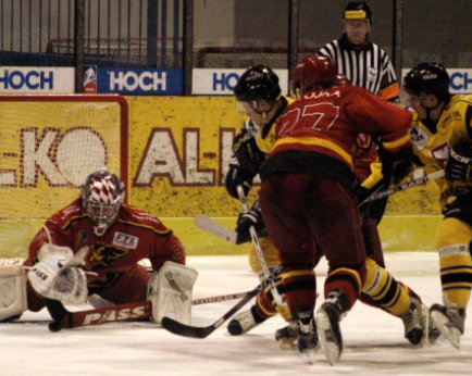 Byl to opět Štefan, kdo se dostal s pukem až do pásma Prostějovských. Sotva přejel modrou čáru, pustil směrem na Hrazdíru razantní dělovku. Ta minula gólmanovu lapačku i horní tyčku a s charakteristickým prásknutím skončila na zadním plexiskle. Odtud se ale šťastně odrazila zpátky před branku, kde už byl dojíždějící Kašpar, jemuž se povedlo okamžitě kotouč uklidit do sítě. Za dvě minuty ovšem přišlo vyloučení Pavla Procházky za rutinní bodyček a Jestřábi srovnali. Prudkou ránu Chvojky sice Kubiš zkrotil, ne však dostatečně, a než si stačil uvědomit, co dál, byl tu úspěšně dorážející Vymazal.