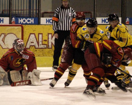Ještě před tím však věnujme pozornost začátku prostřední části. V samém úvodu se ještě hosté dokázali usadit v píseckém pásmu, pak ale Řehoř vyvezl puk a podpořit se jej okamžitě po druhém křídle vydal Pavel Procházka, který také od svého kolegy dostal přihrávku a obtěžován bránícím hráčem okamžitě vystřelil. K tomu, aby jeho pokus do Hrazdírova protipohybu dostal nálepku “gól“, chyběly centimetry. Sedmadvacátá minuta přinesla třetí vyloučení na 2 + 10 minut, tentokrát na straně červenočerných. Řípa knokautoval u mantinelu Štefana, což vzhledem k tělesné konstituci domácího forvarda nemohl učinit jinak než hrubým faulem. Robert Štefan pak spolu s Veselým, Holcem a Kašparem zrežíroval nadějnou přesilovkovou kombinaci, která ale k brance nevedla. První úspěch přišel až při dalším střídání této formace.